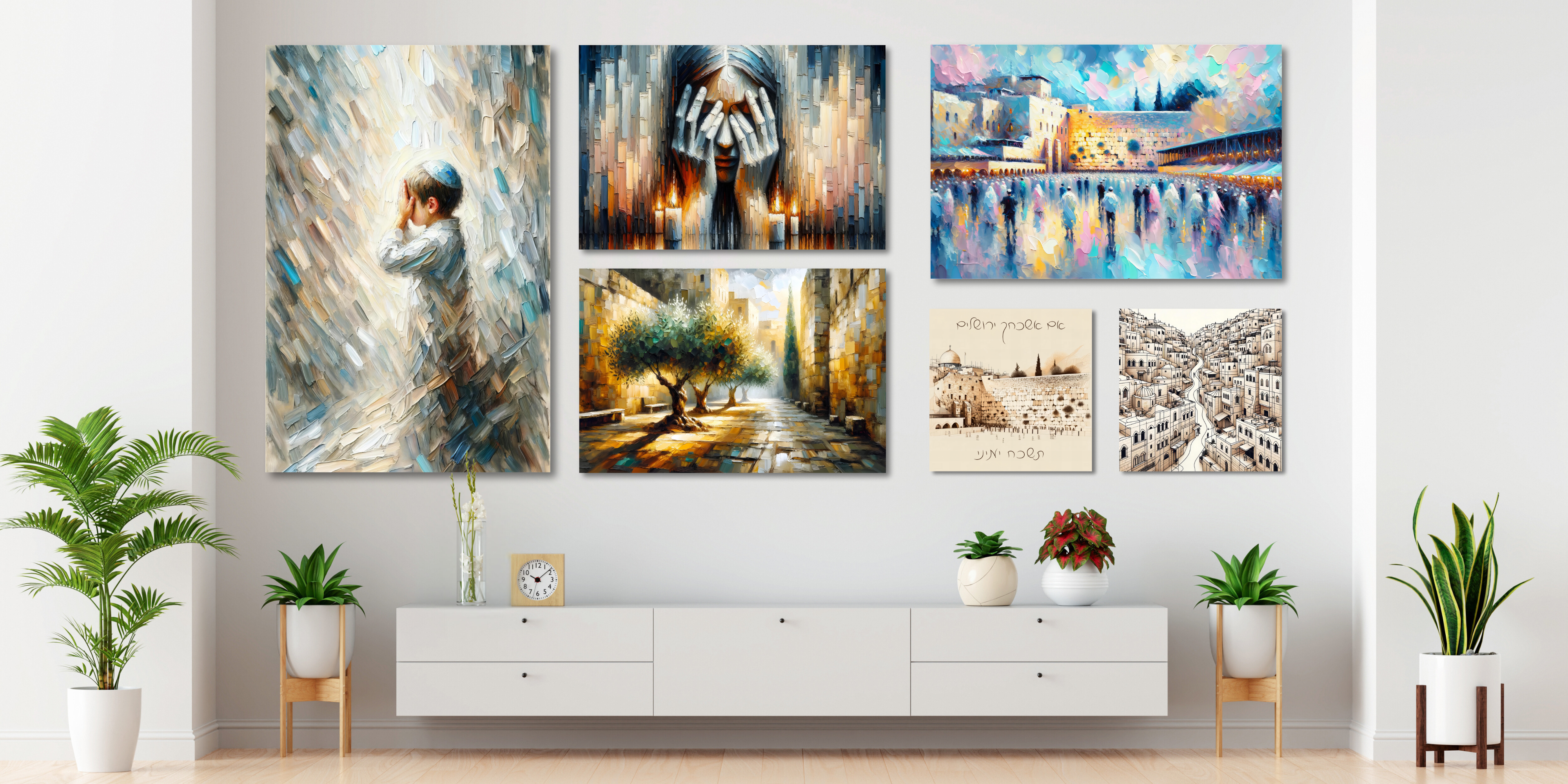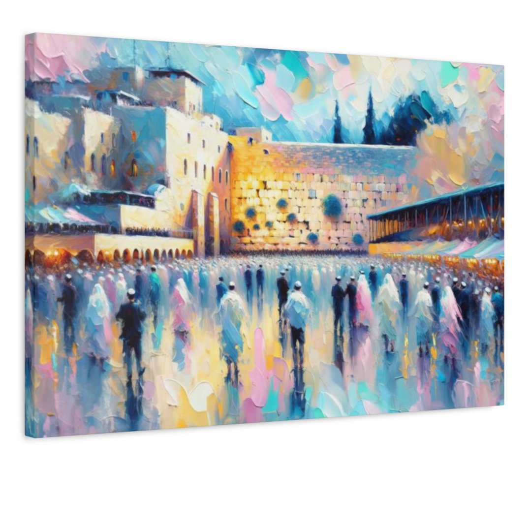 Connect to our iconic Kotel Hama'aravi. The rich colors and dynamic brushstrokes evoke the timeless connection to one of Judaism’s most sacred sites, bringing its deep significance and beauty into your home.